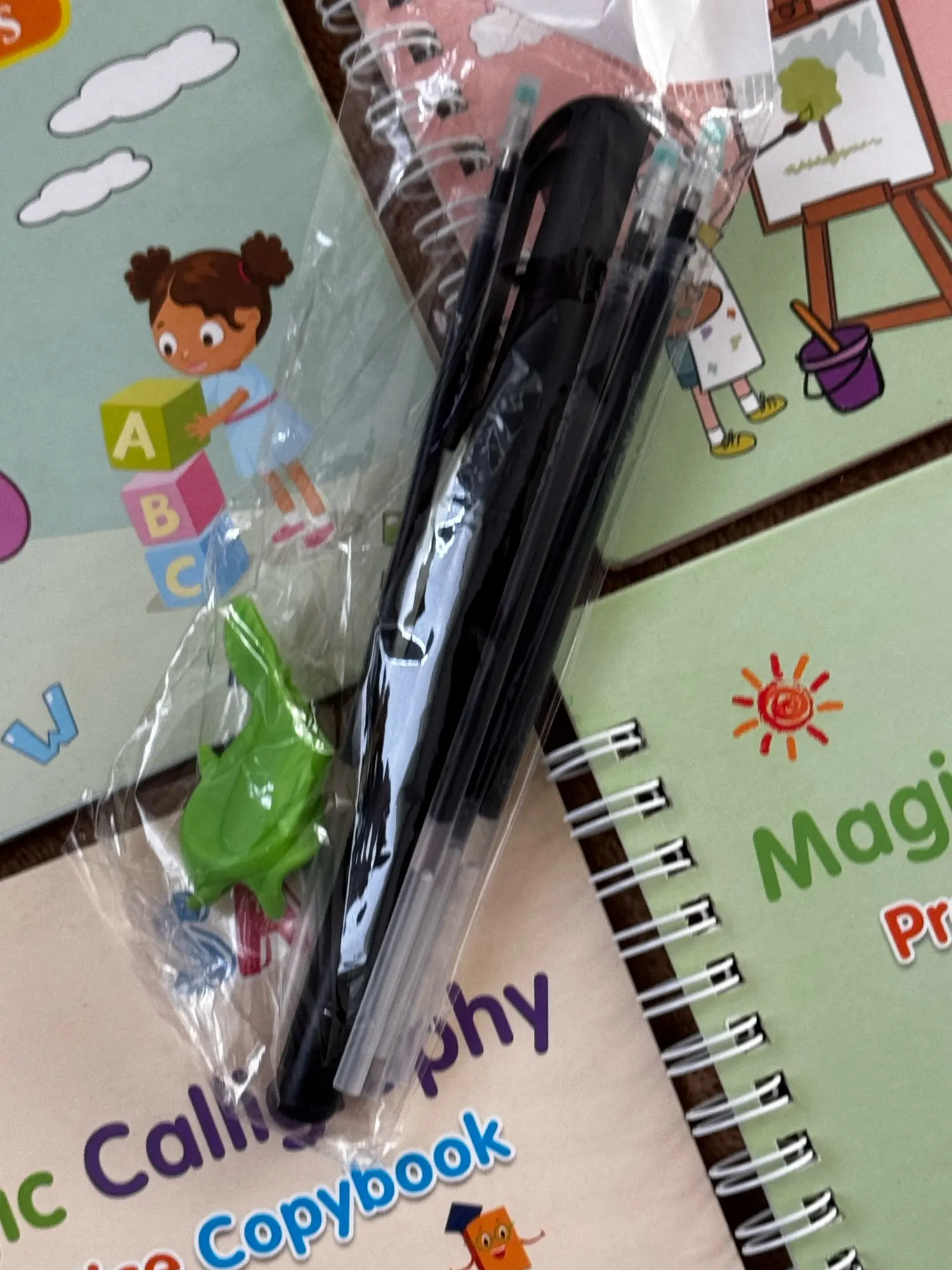 This reusable copybook comes with a magic ink pen that vanishes in minutes, letting your child practice handwriting endlessly without wasting paper or buying new books. Refilling the pen is quick and easy, so the learning never stops!