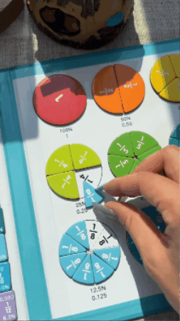in concrete fraction comprehension, thanks to physically manipulating the 51 magnetic pieces for visual mastery of equivalents and comparison.